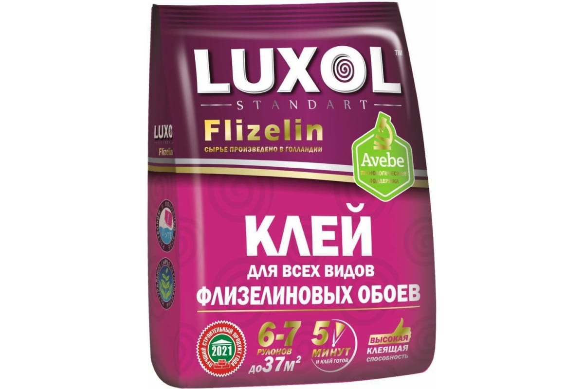 Клей обойный LUXOL флизелин Standart 200г. предназначен для наклеивания всех видов флизелиновых обоев внутри жилых, административных, общественных и производственных помещений на бетонные, гипсокартонные, оштукатуренные и другие поверхности с аналогичной основой, а также для предварительной обработки поверхности под оклейку.