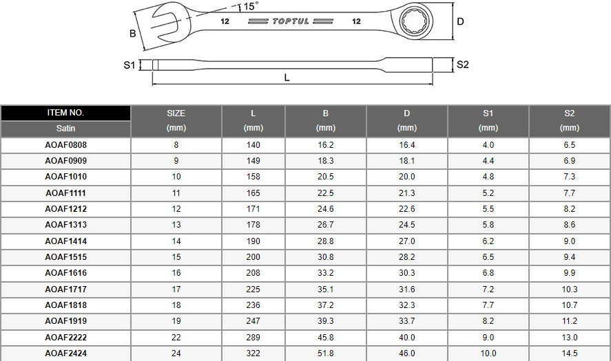 | Количество зубьев в механизме трещотки | 72 зуб. |