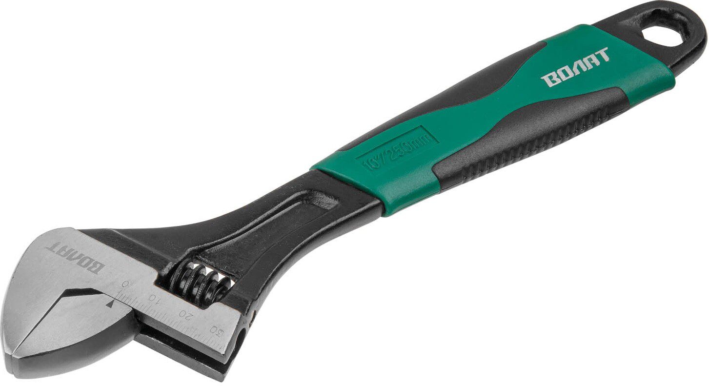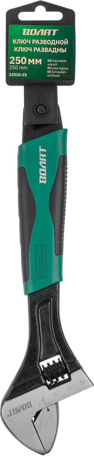 Ключ разводной 250 мм ВОЛАТ (12010-25) предназначен для работы с резьбовыми соединениями широкого диапазона. Изготовлен из высококачественной инструментальной легированной стали. На рабочую поверхность ключа нанесена миллиметровая шкала для удобства использования и настройки инструмента. Облегченная конструкция ключа и обрезиненная ручка увеличивают удобство использования инструмента.