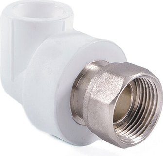 Главная Сантехника Трубы, Фитинги, Уплотнители Полипропиленовые Колено ПП с накидной гайкой 20х1/2″, бел. РТП