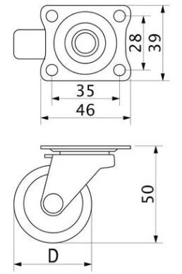 Колесо мебельное AKS d38 мм с резиновым ободом (11079)