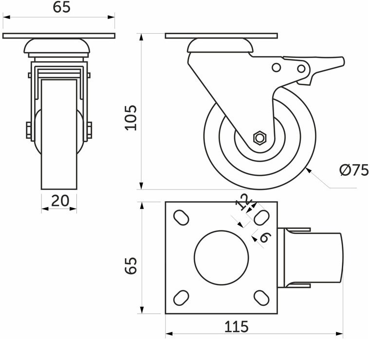 Колесо мебельное со стопором AKS d75 мм с площадкой (68152) – поворотное с резиновым ободом делает выдвижение более мягким и бесшумным.