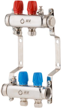 Коллекторная группа AVE135, 2 выхода AV Engineering (AVE13500102) предназначена для распределения и регулировки систем теплого пола. Материал изготовления коллектора – нержавеющая сталь. В комплект поставки входит: 2 коллектора (подача и обратка), крепление коллектора, ручные развоздушиватели, регулировочные вентили, евроконус 16х2.0 . Гарантия на комплектующие – 1 год.