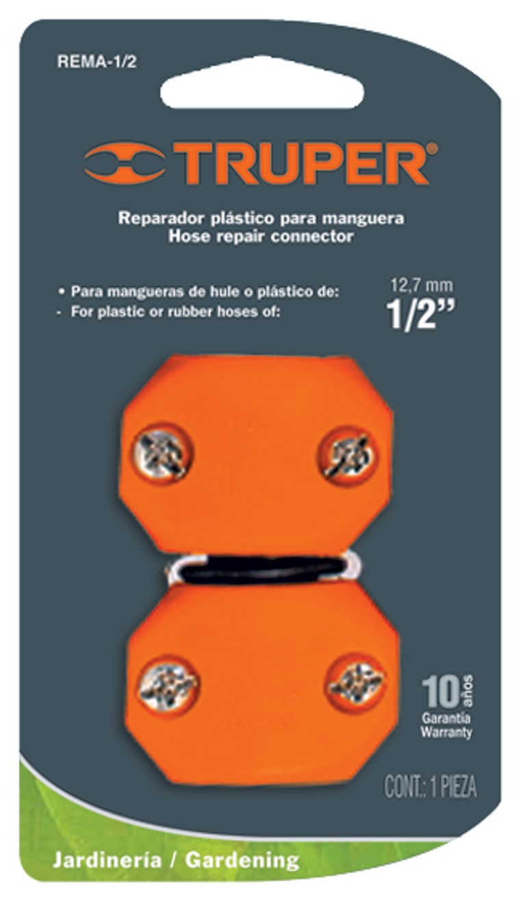Пластиковый коннектор Truper для шланга 1/2″ папа-мама REMA-1/2 12714 изготовлен из ударопрочного полипропилена. Позволяет производить соединения шланга с устройством без инструмента.