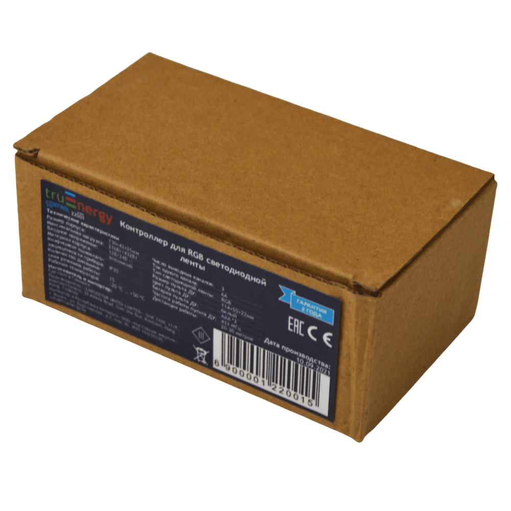 Контроллер RGB для светодиодной ленты TRUENERGY Control 18A (22001) с белым кнопочным пультом имеет 3 выходных канала. Максимальная нагрузка – 216/432 W. Количество динамических режимов работы – 15.