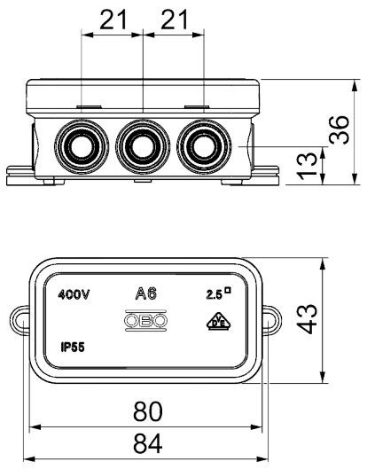 Коробка распределительная ОП 80х43х34 мм OBO BETTERMANN (2000001) используется для разветвления проводов и кабелей, защиты от сырости и механических повреждений мест соединения проводов и кабелей, а также как часть системы электрической канализации, состоящей из кабель-канала и гофрированных труб.