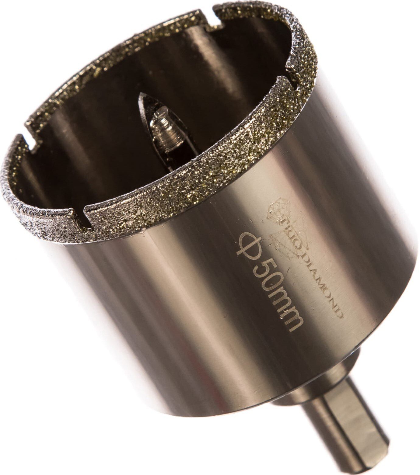 Коронка алмазная d 50 мм по керамике и кафелю TRIO-DIAMOND (400050) с центрирующим сверлом, предназначена для сверления керамогранита, керамики, кафеля и стекла. Оптимально подобранный размер и шаг алмазных сегментов позволил получить высокую скорость сверления, хороший подвод воды в зону реза, что увеличило ресурс коронок. При изготовлении коронок применяется гальванический метод нанесения алмазов. Этот метод позволяет получить плотность размещения алмазных зерен в 16 раз выше, чем метод спекания. Коронка используется для работы с водяным охлаждением в безударном режиме. Хвостовик цилиндрический c 3 гранями, несъёмный, под зажимной патрон.
