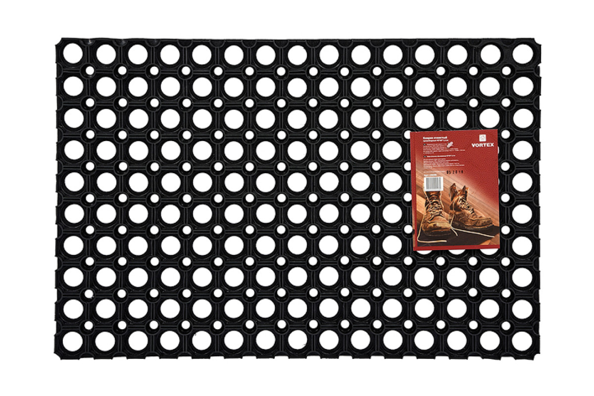 Коврик придверный ячеистый 40х60х1,2 см VORTEX черный (20096) для защиты от грязи и песка. Структура коврика задерживает снег, крупные частицы грязи, препятствует скольжению. Устойчив к антигололедным реагентам и моющим средствам.