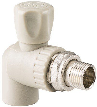 Главная Сантехника Трубы, Фитинги, Уплотнители Полипропиленовые Кран шар. ПП для радиатора 25х3/4″ угл., сер. РТП