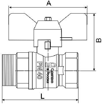 Кран шаровый 1″ наружная-внутренняя резьба бабочка PN 40 LD (LD47.302.25) с никелевым покрытием предназначен для промышленного и бытового использования в системах горячего/холодного водоснабжения, отопления, охлаждения, неагрессивных жидкостей, пара, ГСМ. Климатическое исполнение УХЛ 1,2,3. Длина L – 71,5 мм, длина вентиля А – 65 мм, расстояние от середины крана до вентиля В – 49,5 мм.