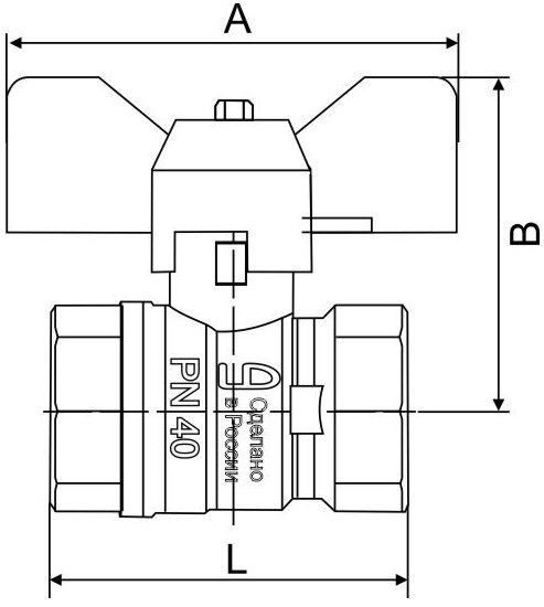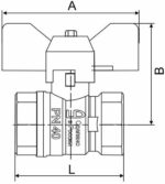 Кран шаровой 1″ внутренняя резьба бабочка LD PN 40 (LD47.300.25) с никелевым покрытием предназначен для промышленного и бытового использования в системах горячего/холодного водоснабжения, отопления, охлаждения, неагрессивных жидкостей, пара, ГСМ. Климатическое исполнение УХЛ 1,2,3. Длина L – 64 мм, длина вентиля А – 65 мм, расстояние от середины крана до вентиля В – 49,5 мм.