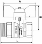 Кран шаровой 1/2″ наружная-внутренняя резьба бабочка LD PN 40 (LD47.302.15) с никелевым покрытием предназначен для промышленного и бытового использования в системах горячего/холодного водоснабжения, отопления, охлаждения, неагрессивных жидкостей, пара, ГСМ. Климатическое исполнение УХЛ 1,2,3. Длина L – 56 мм, длина вентиля А – 52 мм, расстояние от середины крана до вентиля В – 38,5 мм.