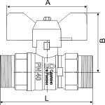 Кран шаровой 3/4″ наружняя резьба бабочка LD PN 40 (LD47.304.20) с никелевым покрытием предназначен для промышленного и бытового использования в системах горячего/холодного водоснабжения, отопления, охлаждения, неагрессивных жидкостей, пара, ГСМ. Климатическое исполнение УХЛ 1,2,3. Длина L – 69 мм, длина вентиля А – 52 мм, расстояние от середины крана до вентиля В – 41,5 мм.