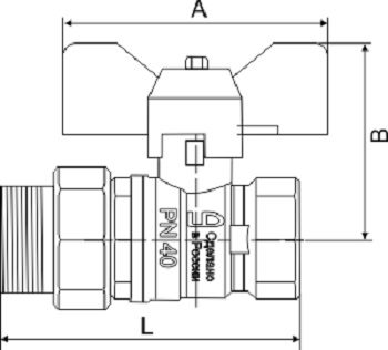 Кран шаровой 3/4″ наружная-внутренняя резьба бабочка со сгоном LD PN 40 (LD47.306.20) с никелевым покрытием предназначен для промышленного и бытового использования в системах горячего/холодного водоснабжения, отопления, охлаждения, неагрессивных жидкостей, пара, ГСМ. Климатическое исполнение УХЛ 1,2,3. Длина L – 87 мм, длина вентиля А – 52 мм, расстояние от середины крана до вентиля В – 41,5 мм.