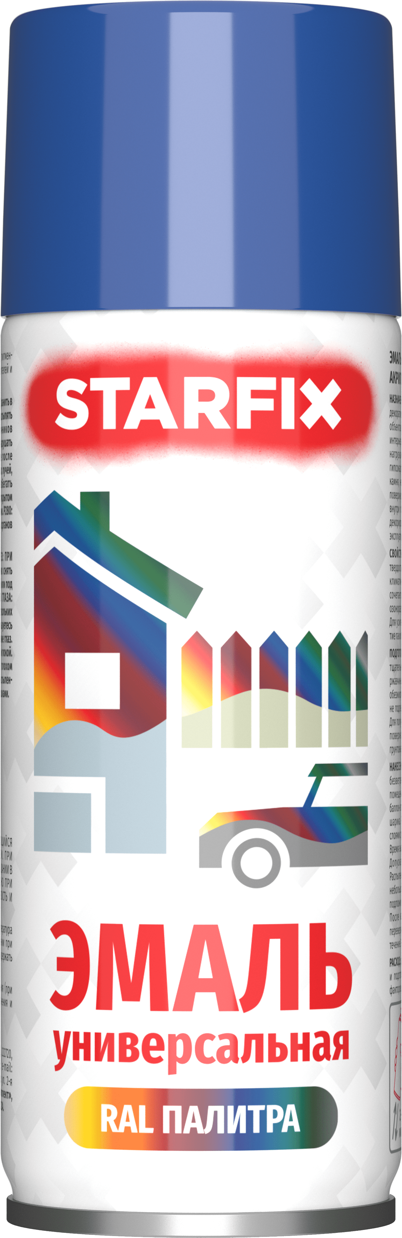 Краска-эмаль аэрозольная универсальная синий 5010 STARFIX 520 мл (SM-99038-1) применяется для быстрого и равномерного окрашивания, декоративного оформления и ремонта небольших по размеру объектов и бытовых изделий, элементов ландшафтного, интерьерного дизайна, не подвергающихся механическим нагрузкам. Рекомендуется нанесение по плотным минеральным поверхностям: бетонным, кирпичным, оштукатуренным, гипсокартонным, из искусственного и натурального камня, неглазурированной керамики, щебня; по металлическим поверхностям, в т. ч. окрашенным ранее порошковыми красками (наружные стенки холодильников, стиральных машин, микроволновых печей и т.п.), по натуральным плотным тканям (плакаты, элементы одежды), эксплуатирующимся в атмосферных условиях и внутри помещений. Возможно применение для окраски и декорирования изделий из древесины (элементы мебели, рамки для фото, окна, двери, и др., кроме полов) и стекла, эксплуатирующихся внутри помещений.