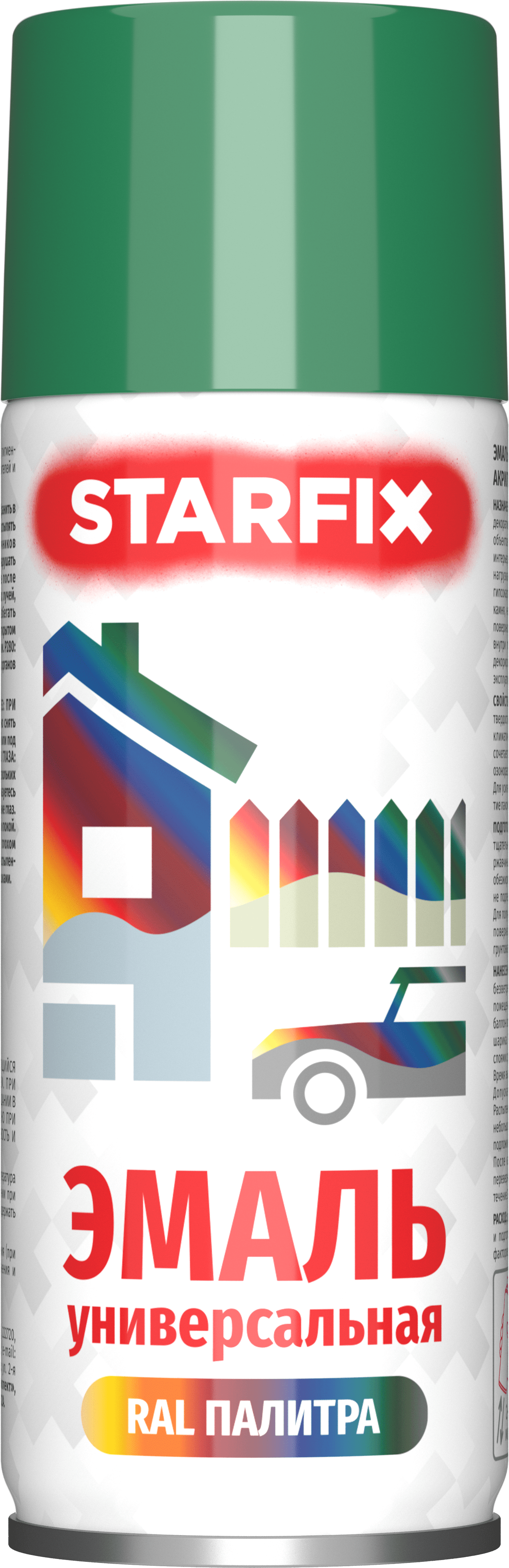 Краска-эмаль аэрозольная универсальная зеленый 6029 STARFIX 520 мл (SM-100057-1) применяется для быстрого и равномерного окрашивания, декоративного оформления и ремонта небольших по размеру объектов и бытовых изделий, элементов ландшафтного, интерьерного дизайна, не подвергающихся механическим нагрузкам. Рекомендуется нанесение по плотным минеральным поверхностям: бетонным, кирпичным, оштукатуренным, гипсокартонным, из искусственного и натурального камня, неглазурированной керамики, щебня; по металлическим поверхностям, в т. ч. окрашенным ранее порошковыми красками (наружные стенки холодильников, стиральных машин, микроволновых печей и т.п.), по натуральным плотным тканям (плакаты, элементы одежды), эксплуатирующимся в атмосферных условиях и внутри помещений. Возможно применение для окраски и декорирования изделий из древесины (элементы мебели, рамки для фото, окна, двери, и др., кроме полов) и стекла, эксплуатирующихся внутри помещений.