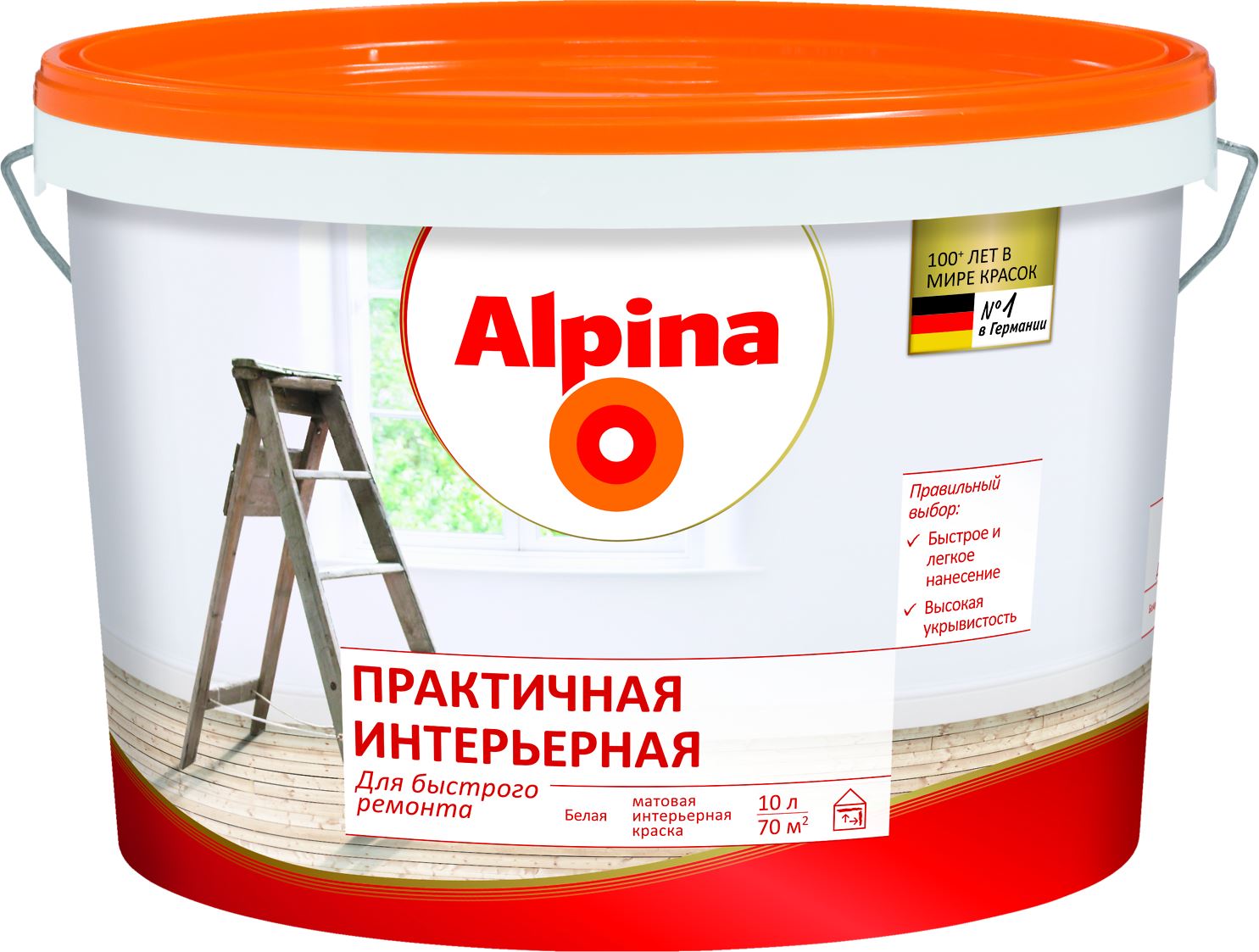 Краска акриловая ALPINA практичная интерьерная белый — матовая водно-дисперсионная краска для внутренних работ. Для потолков и стен с обычной нагрузкой. Простая в нанесении и с высокой укрывистостью, имеет насыщенный белый цвет.
