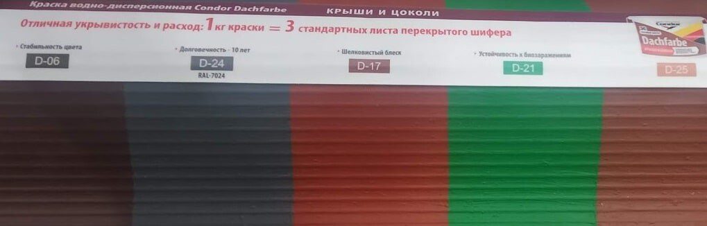 | Расход | 200-250 г/м2 в зависимости от основания при двухслойном покрытии (350 г на стандартный лист перекрытого шифера). |