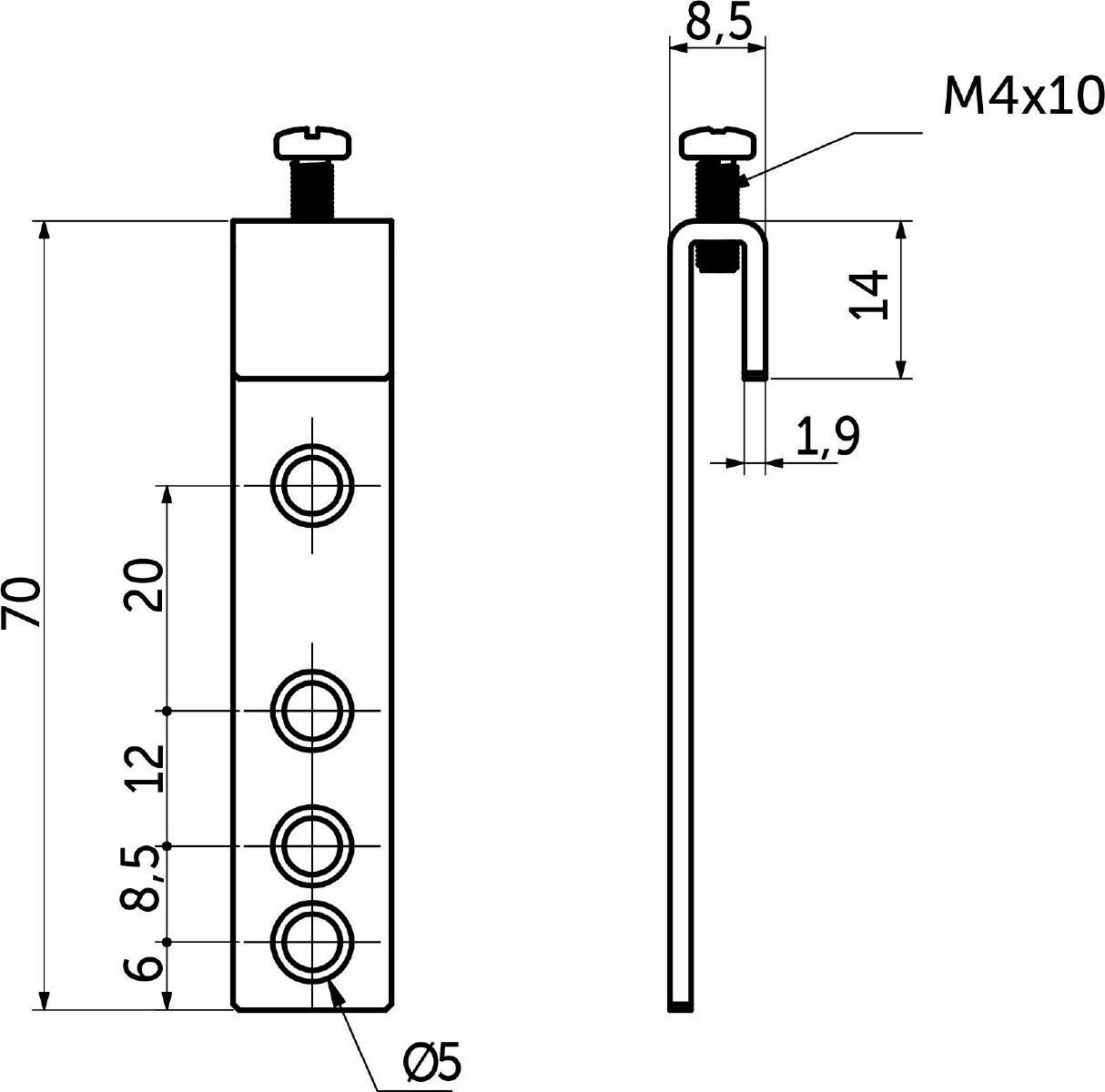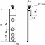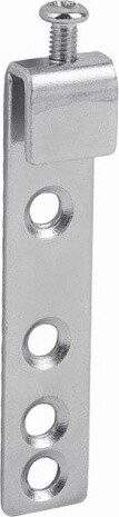 Кронштейн AKS Indaux 70 мм (31757) крепится вертикально четырьмя саморезами к торцевой стороне корпуса изделия, после установки пластины на изделие происходит навешивание на шину. Толщина пластины 1,4 мм, длина 70 мм, ширина 14 мм. Возможна регулировка ящика по высоте. Материал: сталь.