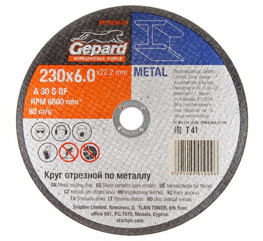 Круг отрезной 230х6×22,2 мм GEPARD по металлу по металлу и нержавеющей стали.