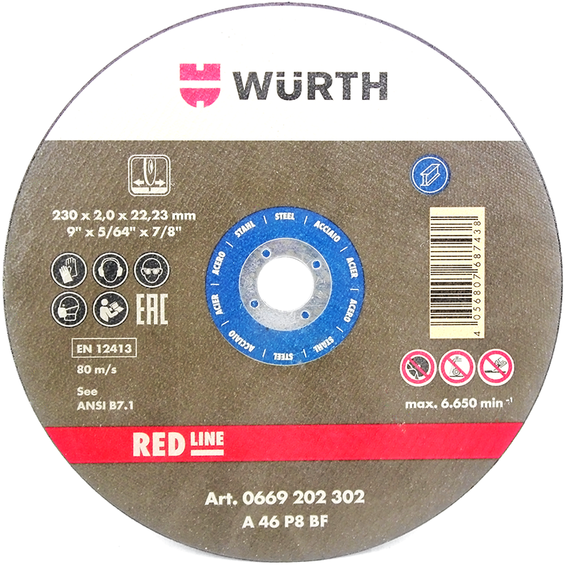 Круг отрезной 230х2,0 мм WURTH RED LINE сталь прочный режущий диск с высокими эксплуатационными характеристиками.