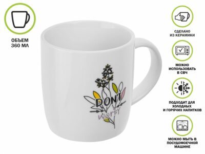 Кружка керамическая PERFECTO LINEA Joyful day-1 360 мл (30-250301) – подходит для подачи горячих и холодных напитков. Керамика отличается высокой экологичностью. Допускается применение при любой температуре: холодильник, разогрев в микроволновой печи. Неустойчива к перепадам температуры. Можно мыть в посудомоечной машине.