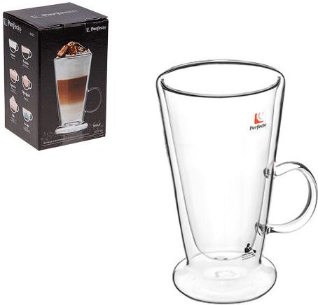 Кружка стеклянная PERFECTO LINEA Baile с двойными стенками 300 мл (30-002300) дольше сохраняет температуру напитка. Горячее будет долго не остывать, а холодные напитки, напротив, не будут становится теплыми. Стакан не будет обжигать руки и деформировать поверхности. Такие способности придают этой кружке двойные стенки и прослойка воздуха, находящаяся между ними. Боросиликатное стекло остается блестящим всегда, ведь оно не подвержено царапинам. Рекомендации: не мыть в посудомоечной машине; не использовать в микроволновой печи; не использовать в духовке; не использовать абразивные чистящие средства.