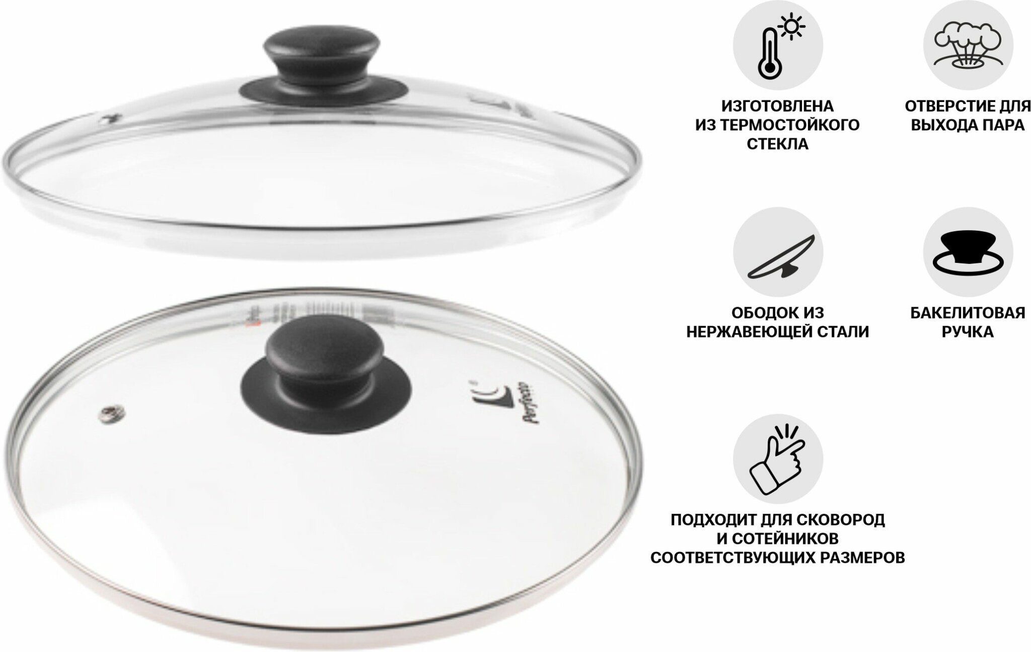 Крышка стеклянная 22 см PERFECTO LINEA (25-022020) универсальна в использовании и подходит для сковород и кастрюль соответствующего размера и формы. Металлический обод защищает от повреждений. Удобная рукоятка не нагревается при использовании.