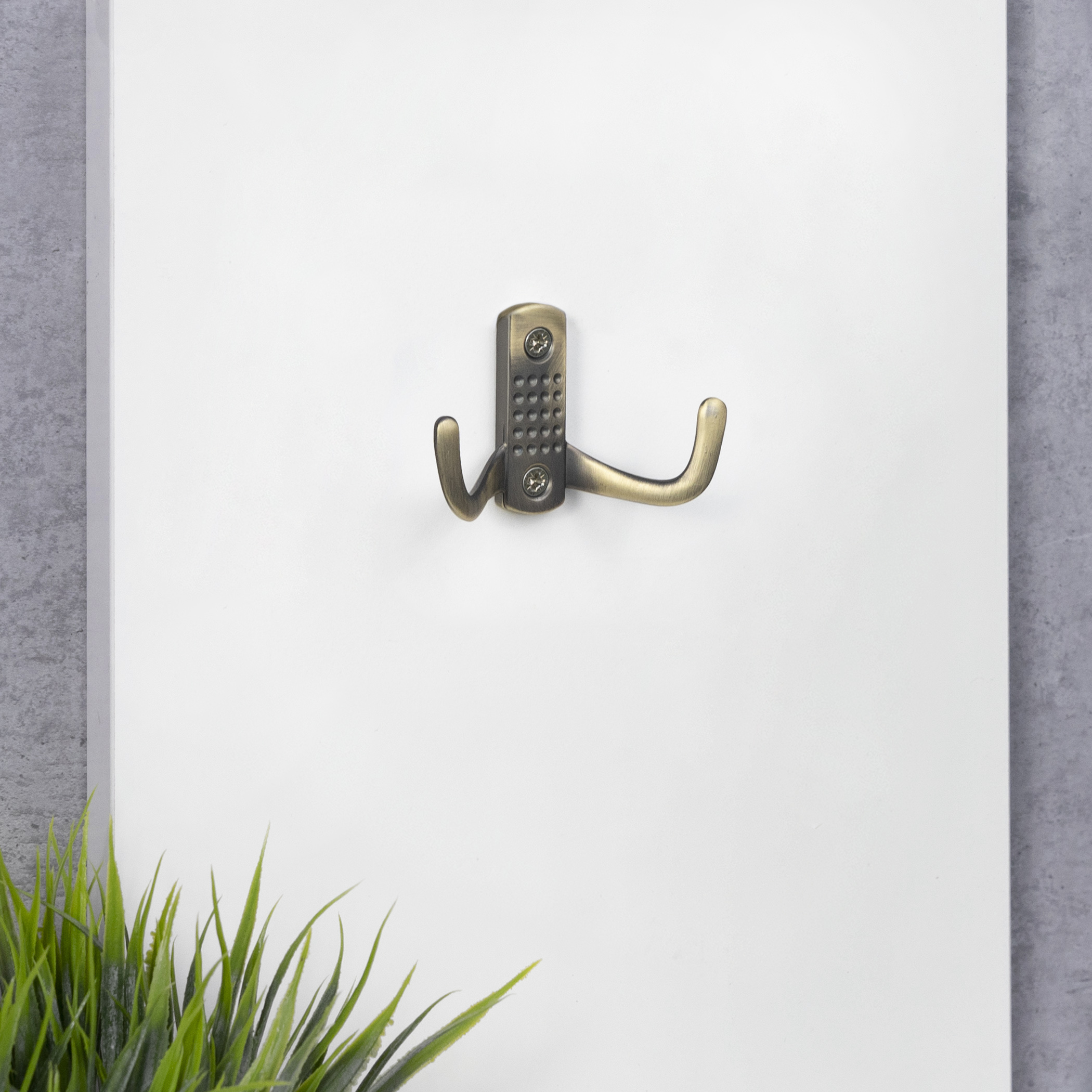 Двухрожковый металлический настенный крючок. Крючок может использоваться как в гардеробных, так и ванной комнате. Крючок имеет стильный минималистичный дизайн, который подойдет практически к любому стилю интерьера. Крепится с помощью саморезов. В комплекте 2 самореза 4×18.
