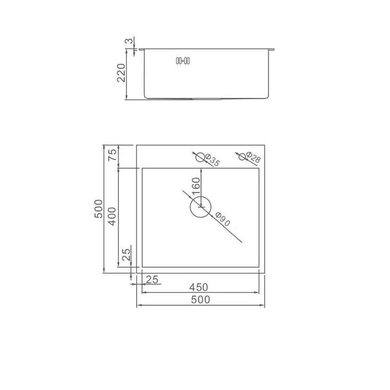 Кухонная мойка 500*500*200мм ДS5050В