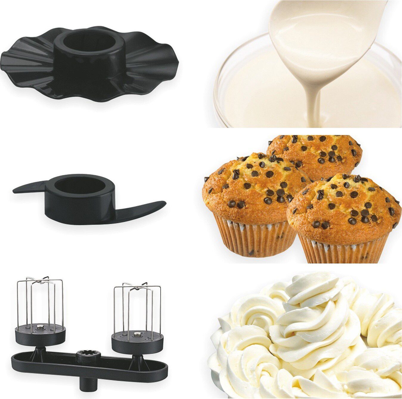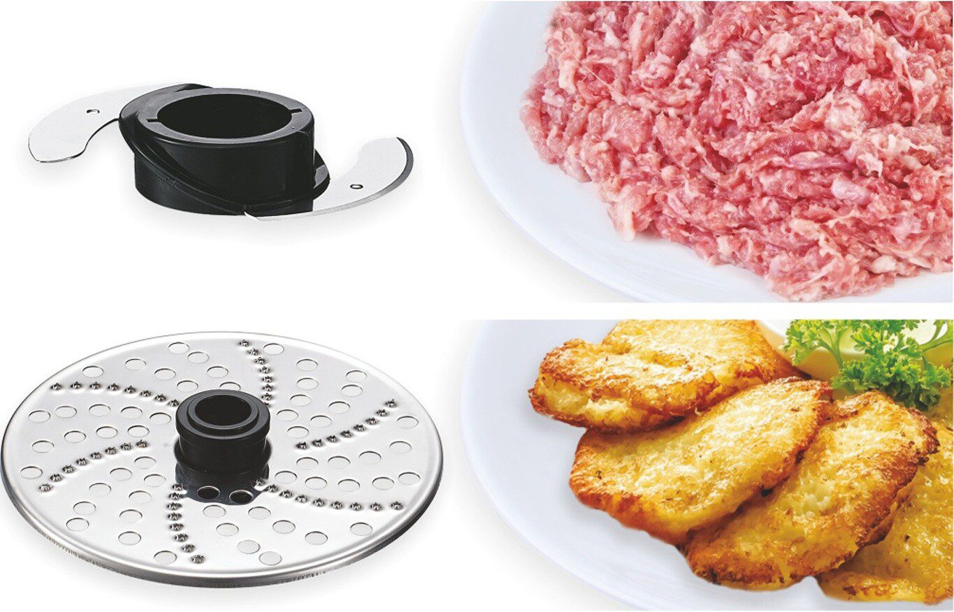Терка, Терка для драников, Насадка для нарезки ломтиками, Универсальный нож, Насадка для взбивания, Насадка для теста, Насадка-эмульгатор