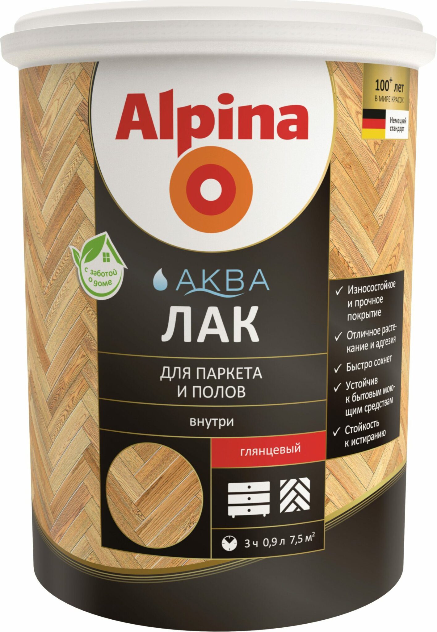 Лак акриловый ALPINA Аква Для паркета и полов прозрачный 0,9 л (948103423) создает гладкую поверхность с отличной износостойкостью и образует прочное к удару и царапинам покрытие. Покрытие легко очищается мыльной водой или бытовыми моющими средствами, обеспечивает стойкость к статическому воздействию воды и бытовым моющим средствам.