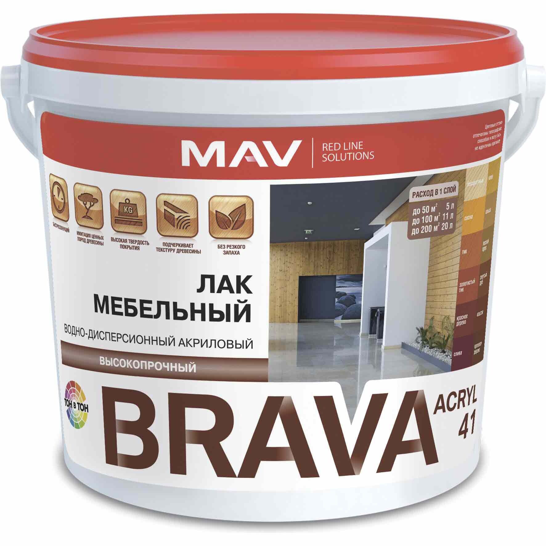 Лак акриловый BRAVA Acryl 41 ВД-АК-2041 глянцевый бесцветный 1 л предназначен для высококачественной декоративной отделки и защиты поверхностей из массива древесины, MDF, изделий, облицованных натуральным или искусственным шпоном (межкомнатные двери, лестничные перила, вагонка, плинтуса, бревна, брусья, стеновые и потолочные панели, элементы мебели и т.п., кроме полов), эксплуатируемых внутри помещений.