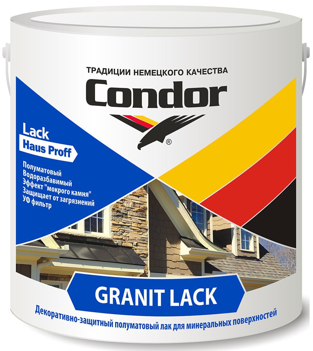 Лак акриловый CONDOR Granit Lack 2,3 л служит для защиты и декоративной отделки элементов фасадов и оград (столбы и цоколи), каменных террас, элементов декора помещений, а также применяется при облицовке каминов. Лак не предназначен для горизонтальных поверхностей при наружных работах, а также для глазурованных и полированных поверхностей, тротуаров и полов. Не применять для облицовочного кирпича с проблемами высолов.