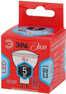 Лампа светодиодная GU5.3 ЭРА MR16 5 Вт 4000К (ECO LED MR16-5W-840) устанавливается в светильник с соответствующим цоколем. Светит ярким белым светом, который максимально приближен к естественному дневному.