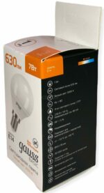 Лампа светодиодная E14 Gauss Basic G45 7 Вт 3000K (10501172) предназначена для освещения помещения. Форма колбы: шар, цоколь Е14, напряжение 230 Вольт. Световая температура: теплый свет. Эквивалентная мощность лампы накаливания около 60 Вт.
