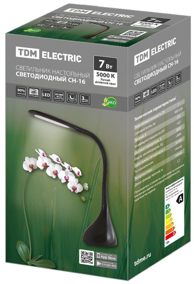 Лампа настольная светодиодная 7 Вт 5000 К TDM СН-16 черный (SQ0337-0093) – это идеальное энерго-эффективное решение для освещения рабочего места. Светильники настольные LED TDM ELECTRIC прекрасно впишутся как в уютную домашнюю обстановку, так и в строгий офисный интерьер. Светодиодные настольные светильники TDM Electric не требуют замены источника света. Срок службы настольных светодиодных светильников TDM ELECTRIC – 50 000 часов. Светодиоды закрыты матовым рассеивателем, что позволяет создать мягкий рассеянный свет без слепящего эффекта. При работе светильник не нагревается, что делает его использование абсолютно безопасным.