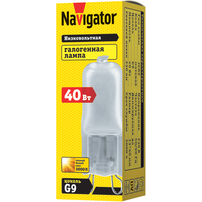 Лампа галогенная G9 NAVIGATOR 40 Вт предназначена для использования в холодильниках.