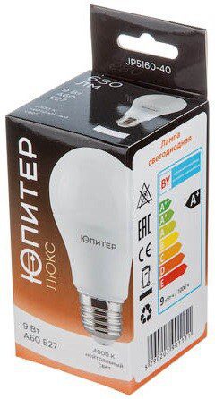 Лампа светодиодная E27 ЮПИТЕР Люкс A60 9 Вт 4000К (JP5160-40) предназначена для использования в стандартных электрических сетях. Не создает электромагнитных помех другим устройствам, соответствует всем стандартам по энергобезопасности. Алюминиевый радиатор в пластиковом кожухе обеспечивает низкую температуру нагрева за счёт отвода тепла от основных частей лампы. Класс А+ энергоэффективности гарантирует максимальную световую отдачу при минимальных затратах на энергопотребление. Время работы – 30000 часов. Температура использования от -25 до +40 градусов Цельсия.