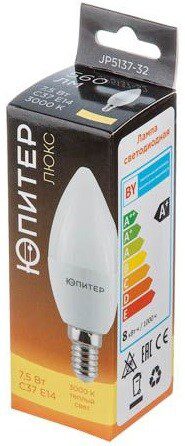 Лампа светодиодная E14 ЮПИТЕР Люкс C37 7,5 Вт 3000К (JP5137-32) предназначена для использования в стандартных электрических сетях. Не создает электромагнитных помех другим устройствам, соответствует всем стандартам по энергобезопасности. Алюминиевый радиатор в пластиковом кожухе обеспечивает низкую температуру нагрева за счёт отвода тепла от основных частей лампы. Класс А+ энергоэффективности гарантирует максимальную световую отдачу при минимальных затратах на энергопотребление. Время работы – 30000 часов. Температура использования от -25 до +40 градусов Цельсия.