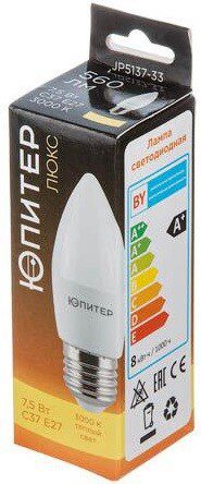 Лампа светодиодная E27 ЮПИТЕР Люкс C37 7,5 Вт 3000К (JP5137-33) предназначена для использования в стандартных электрических сетях. Не создает электромагнитных помех другим устройствам, соответствует всем стандартам по энергобезопасности. Алюминиевый радиатор в пластиковом кожухе обеспечивает низкую температуру нагрева за счёт отвода тепла от основных частей лампы. Класс А+ энергоэффективности гарантирует максимальную световую отдачу при минимальных затратах на энергопотребление. Время работы – 30000 часов. Температура использования от -25 до +40 градусов Цельсия.