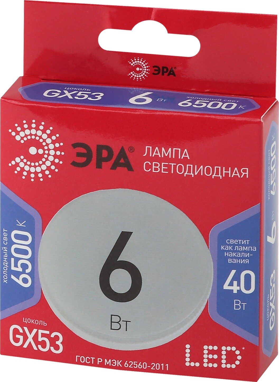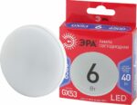 Лампа светодиодная GX53 ЭРА Red Line Led Таблетка 6 Вт 6500К (GX-6W-865-GX53 R) с отличными характеристиками для установки в люстры и все типы бытовых светильников – потолочные, настольные, бра. Бережёт электроэнергию, ярко светит, имеет долгий срок службы. Цветовая температура – холодный белый свет. Такое освещение бодрит, повышает работоспособность. Этот современный источник света создаёт комфортное и безопасное для глаз освещение.