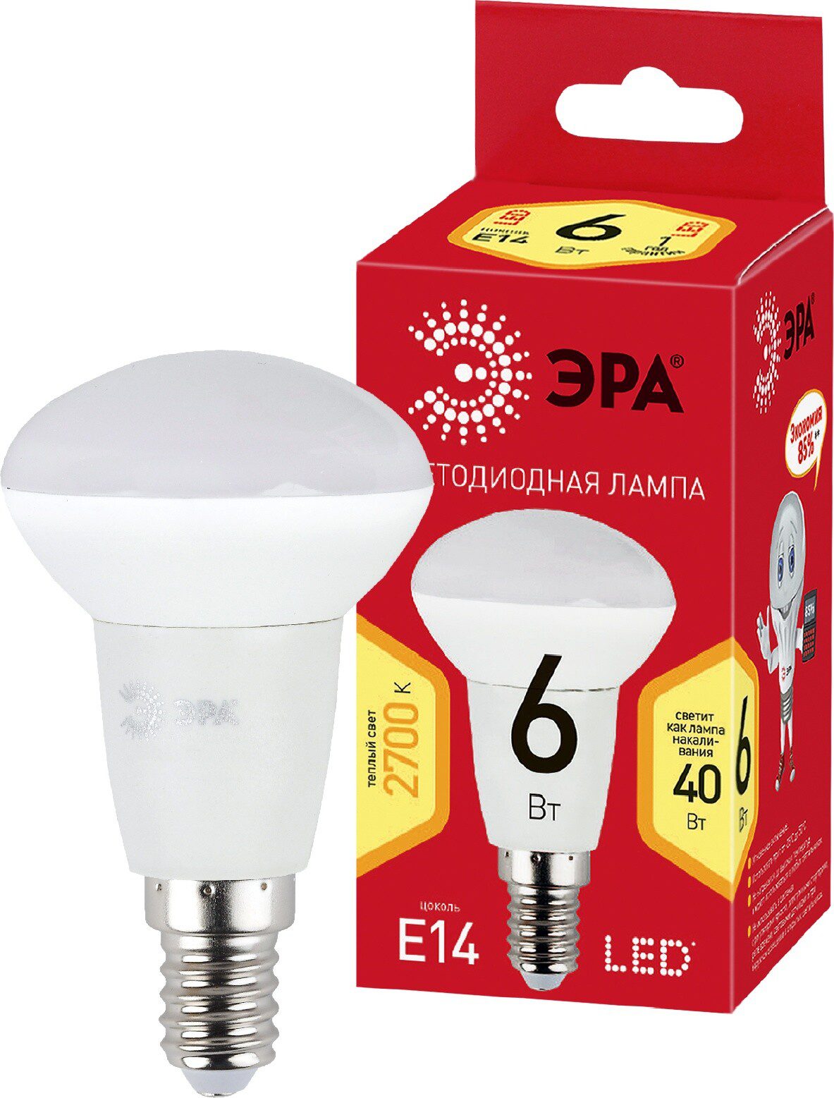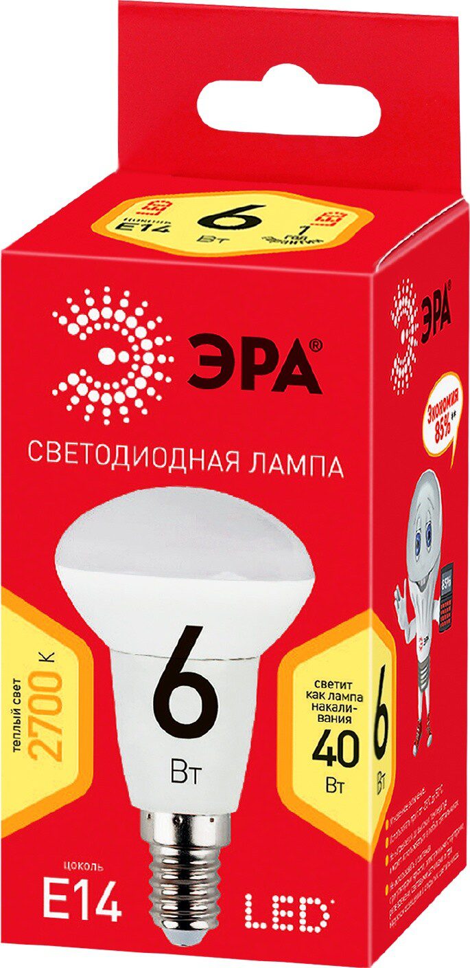 Лампа светодиодная E14 ЭРА RED LINE 6 Вт R50 2700К (R50-6W-827-E14 R) создает яркое ровное освещение и экономит до 90% электроэнергии по сравнению с лампой накаливания с аналогичным световым потоком. Светит теплым светом с желтым оттенком – такая цветовая температура эффективна для отдыха и уютной атмосферы в доме. Используется в потолочных, настенных, настольных светильниках, в люстрах и бра. Мгновенно включается и не нагревается.