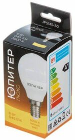 Лампа светодиодная E14 ЮПИТЕР Люкс G45 6 Вт 3000К (JP5145-30) купить в сети строительных магазинов Мастак