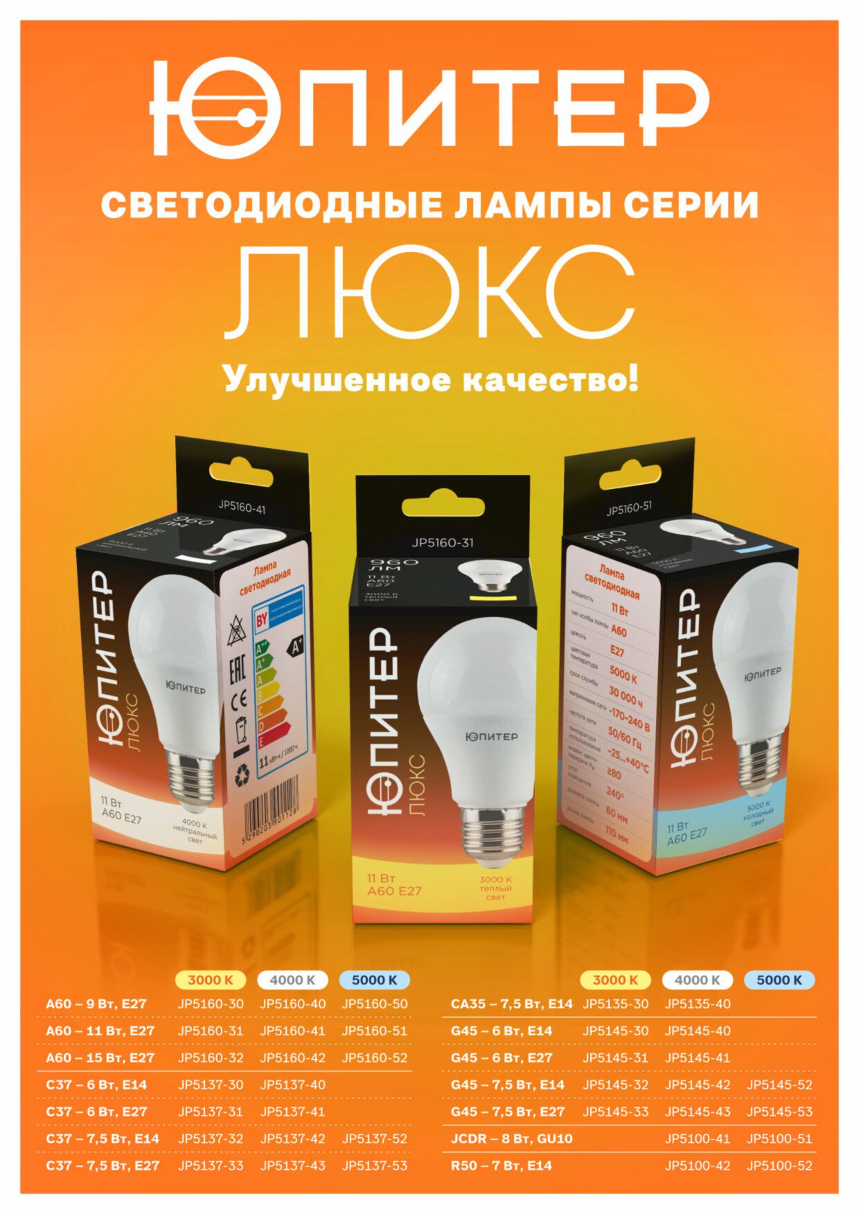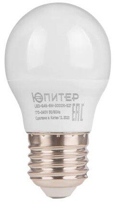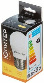 Лампа светодиодная E27 ЮПИТЕР Люкс G45 6 Вт 3000К (JP5145-31) купить в сети строительных магазинов Мастак
