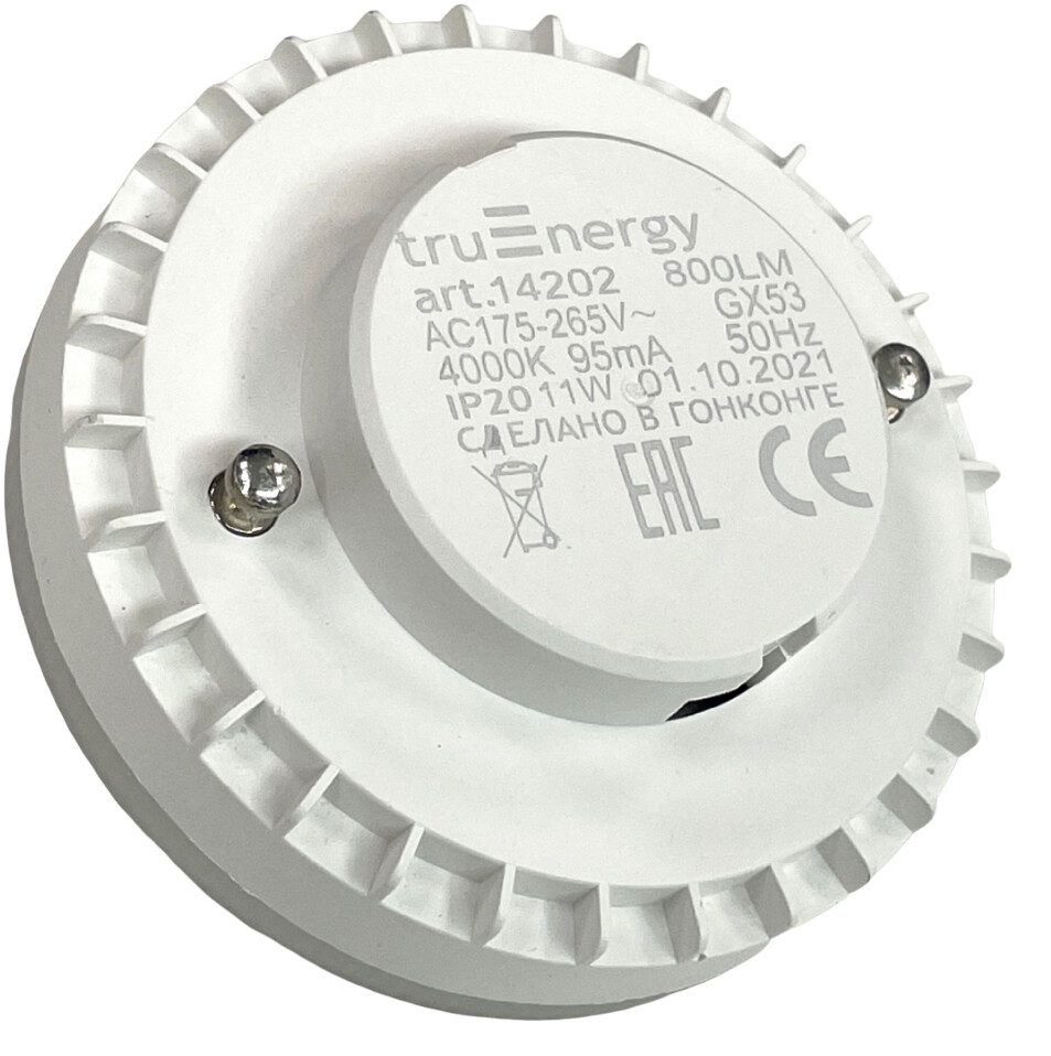 Лампа светодиодная GX53 TRUENERGY 11 Вт 4000K (14202) энергоэффективность этого устройства позволяет использовть его в местах, где ранее использовались светильники с лампами накаливания мощностью до 75 Ватт.Модель обладает нейтральным цветом свечения, который прекрасно подходит и как для жилых помещений и комнат, так и для рабочих зон (офисов, кабинетов, производств) . Данный свет стимулирует к работе не вызывая перенапряжения глаз и не искажая цветопередачу. Универсальное и наиболее распространенное решение.