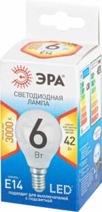 Лампа светодиодная E14 ЭРА QX P45 6 Вт 3000K создаёт яркое ровное освещение и экономит до 90% электроэнергии по сравнению с лампой накаливания с аналогичным световым потоком. Светит теплым светом с жёлтым оттенком – такая цветовая температура эффективна для отдыха и уютной атмосферы в доме. Используется в потолочных, настенных, настольных светильниках, в люстрах и бра. Мгновенно включается и не нагревается.