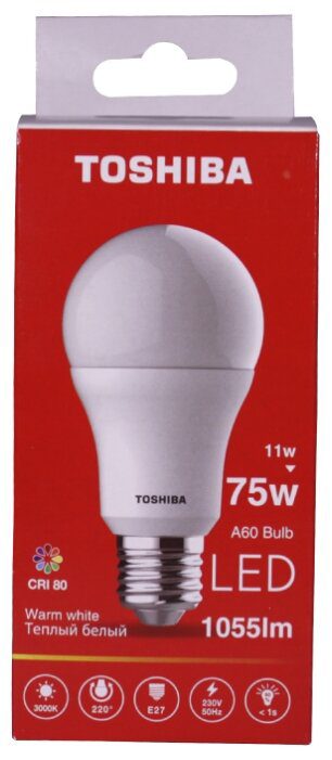 Лампа светодиодная Е27 TOSHIBA A60 11 Вт 4000K предназначена для бытовго использования.