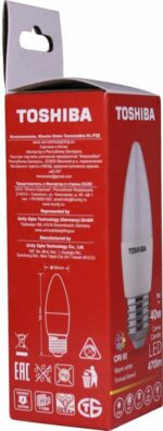 Главная Освещение Лампочки Лампа светодиодная TOSHIBA Candle C35 40W 3000K CRI 80 ND E27 (5W 260°)