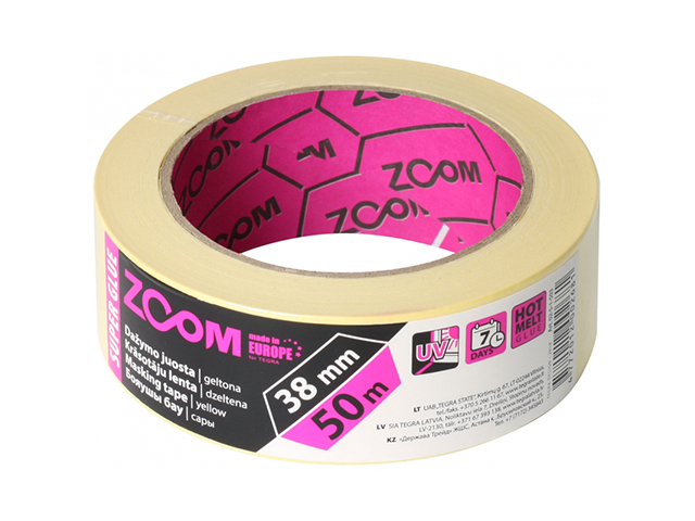 Лента малярная 38 мм 50 м ZOOM (02-5-1-503) для малярных работ, внутри и снаружи помещения. Используется в основном при покраске, для защиты площадей, которые не должны быть покрыты краской, а также для создания четких краев рисунка при нанесении краски.